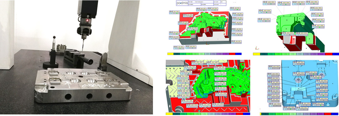 對(duì)每一個(gè)前模、后模以及主要鑲件進(jìn)行完整的CMM三坐標(biāo)檢測(cè),提供完整的CMM測(cè)量報(bào)告。